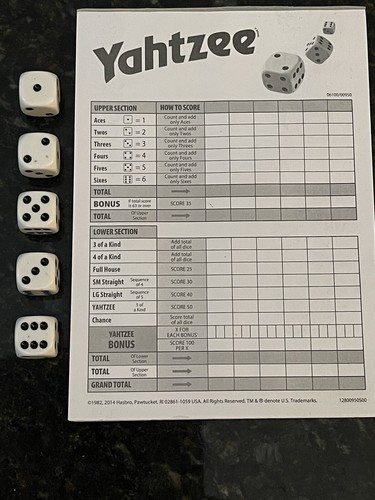 Yahtzee 56 Score Pad Sheets 5 Dice Replacement Game Parts Piece Refill Ebay