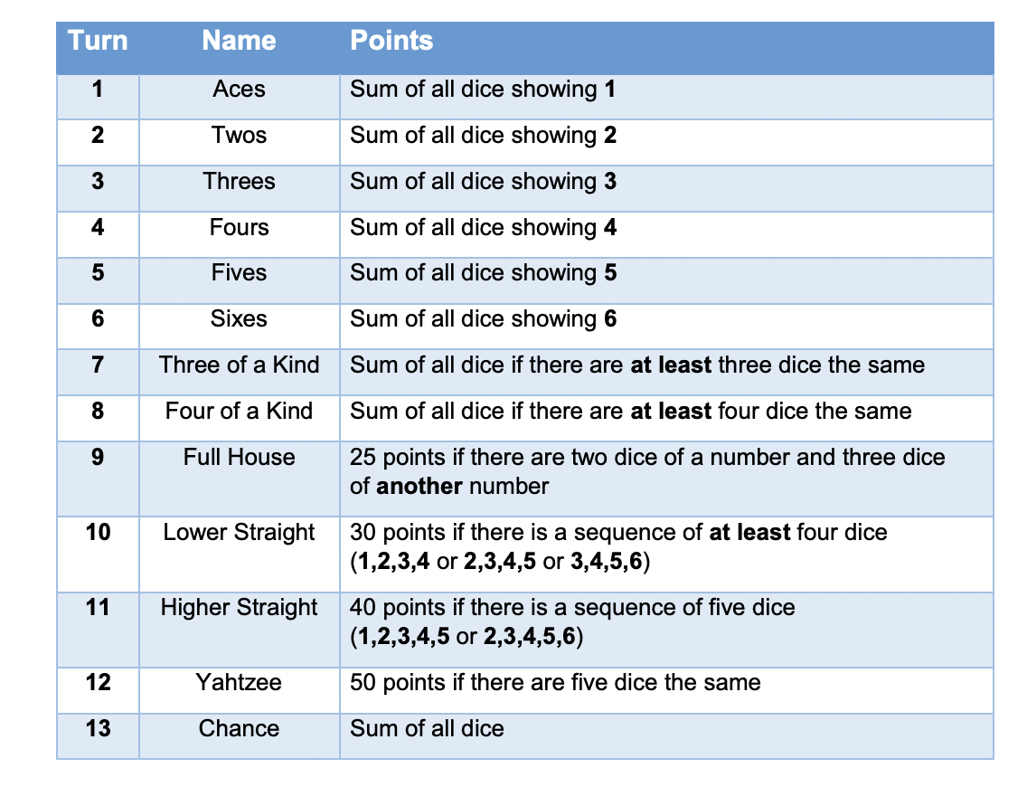 For each dice roll you. One scores a Full House when three of one number and two dice of another. Throw the dice to build straights full house five of a kind-YAHTZEE.